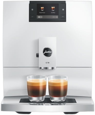 “JURA C9 (EA) tilhører et helt særligt produktsegment: “”Premium Economy”” hvor mindre og kompakte fuldautomatiske kaffemaskiner med høj performance er designet med elementer fra JURA’s Premium segment. C9 serverer 17 forskell