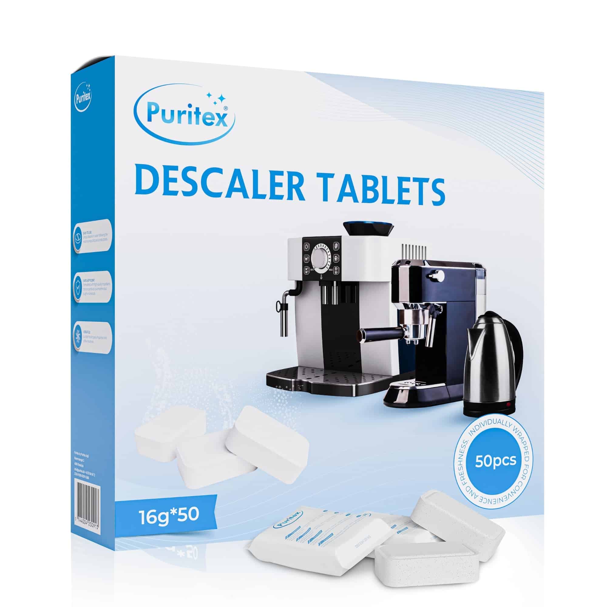 Puritex Afkalkningstabletter til Kaffe- og Espressomaskiner Opdag en effektiv og økonomisk løsning til vedligeholdelsen af din kaffe- og espressomaskine med Puritex Afkalkningstabletter. Udviklet som et prisvenligt alternativ til de dyrere mærkevarer, tilbyder Puritex den samme høje kvalitet og effektivitet til en brøkdel af prisen. Vores tabletter er designet til at være fuldt kompatible med førende mærker som Sage, Siemens, Delonghi, og Philips, sikrer en dybdegående rensning og forlænger levetiden på din maskine. Effektiv afkalkning for både fuldautomatiske og manuelle kaffemaskiner, inklusiv kapsel- og podmaskiner. Kompatibel med en bred vifte af mærker, herunder Nespresso, Bosch, Jura, og mange flere. Hver pakke indeholder tabletter i tre størrelser: 15, 25, og 50 stk., med hver tablet vejer 16g for præcis dosering. Anbefalet dosering: 1-2 tabletter pr. afkalkning, afhængigt af kalkniveauet og maskinens størrelse. For yderligere at understøtte din kaffemaskines vedligeholdelse, udforsk vores komplette sortiment af rengøringsprodukter til kaffe- og espressomaskiner her. Effektiv og Sikker Afkalkning med Puritex Vores afkalkningstabletter er skabt for at sikre en hurtig opløsning uden at efterlade rester, hvilket gør dem ideelle for både hjemmebrug og professionelle miljøer. Ved regelmæssig brug hjælper Puritex med at fjerne kalk effektivt fra interne dele, hvilket bidrager til en optimal ydeevne og bevarelse af kaffens smag. Desuden understøtter regelmæssig afkalkning energieffektiviteten af din maskine. Kompatibilitet og Anvendelse Puritex afkalkningstabletter er udviklet til brug i et bredt udvalg af kaffe- og espressomaskiner. De er særligt velegnede til maskiner fra Sage, AEG, Bosch, Delonghi, Jura, Krups, Melitta, Saeco, Siemens, og mange andre. For bedste resultat, følg den anbefalede dosering og din maskines specifikke afkalkningsinstruktioner. Et Prisvenligt Alternativ Med Puritex får du en højkvalitets løsning til afkalkning uden de høje omkostninger forbundet med mærkevareprodukter. Vores tabletter tilbyder en omkostningseffektiv måde at vedligeholde din maskine på, sikrer dens længere levetid og optimal funktion. Instruktioner for Brug Opløs 1-2 Puritex afkalkningstabletter i 500 ml vand. Fyld vandtanken og lad opløsningen strømme gennem maskinen. Skyl efterfølgende med rent postevand for at fjerne eventuelle afkalkningsrester. Datablad